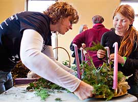 Traditionally, Advent wreaths are constructed of a circle of evergreen branches into which four candles are inserted, representing the four weeks of Advent. Ideally, three candles are purple and one is rose, but white candles can also be used.The purple candles in particular symbolize the prayer, penance, and preparatory sacrifices and goods works undertaken at this time. The rose candle is lit on the third Sunday, Gaudete Sunday, when the priest also wears rose vestments at Mass; Gaudete Sunday is the Sunday of rejoicing, because the faithful have arrived at the midpoint of Advent, when their preparation is now half over and they are close to Christmas.